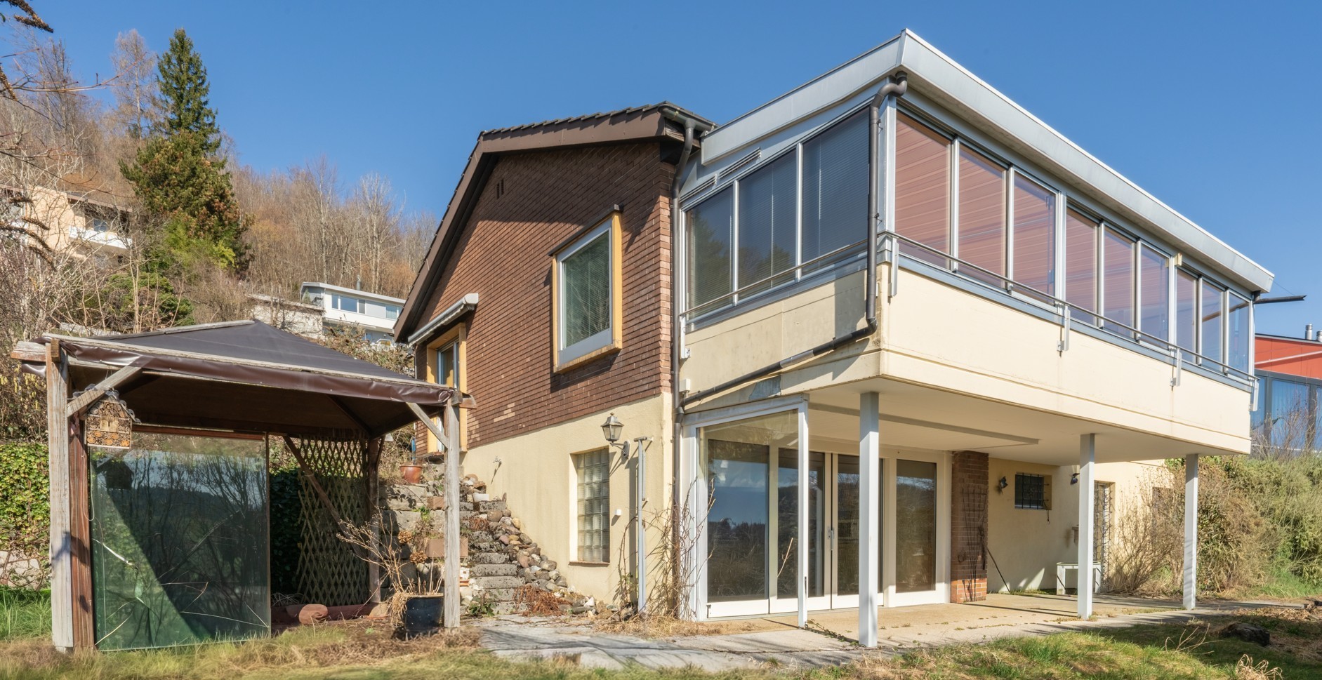 Charming single-family home in Bäretswil with stunning panoramic and mountain views and a large garden. The property spans two floors and offers a variety of possibilities for use. The house is in need of renovation but offers enormous potential— whether for a stylish renovation or a new build. On the one hand, there is the possibility of creating a two-family home, or of realizing the dream of creating your own home.